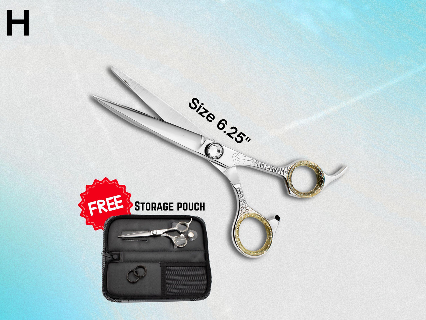 H. Silver Scissors - 6.25" Groom with ease using 6.25" Silver Scissors, featuring an adjustable zircon screw, rubber rings, and attached finger rest for optimal comfort and control.