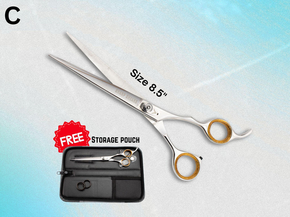 D. Silver Crane Handle Scissors - 5.5" Compact and precise! 5.5" Silver Crane Handle Scissors with removable finger rest and adjustable screw, perfect for delicate cuts and smaller pets.