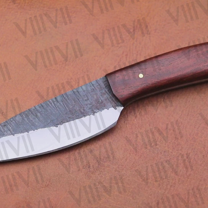 This hand-forged hunting knife combines rugged utility with a classic design. The stainless steel blade features a striking forged effect finish and is built for strength and durability in fieldwork, making it an ideal choice for skinning, camping, and general outdoor use.