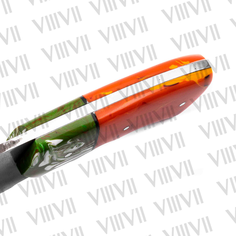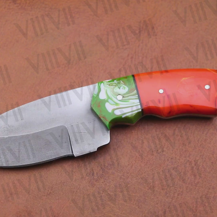 Stainless Steel Skinning Knife – Orange Resin Handle | Full Tang Handmade Knife for Hunting, Camping & Outdoor Gifts