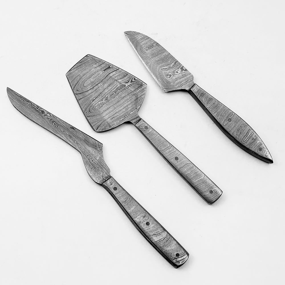Elevate your dining and kitchen experience with this Damascus Steel Cheese Knife Set, designed for true cheese lovers. Each knife is hand-forged, lightweight, and sharp enough to cut through every type of cheese — from soft and creamy to hard and aged. Beyond cheese, these knives are also perfect for slicing chocolates, fruits, and other treats.
