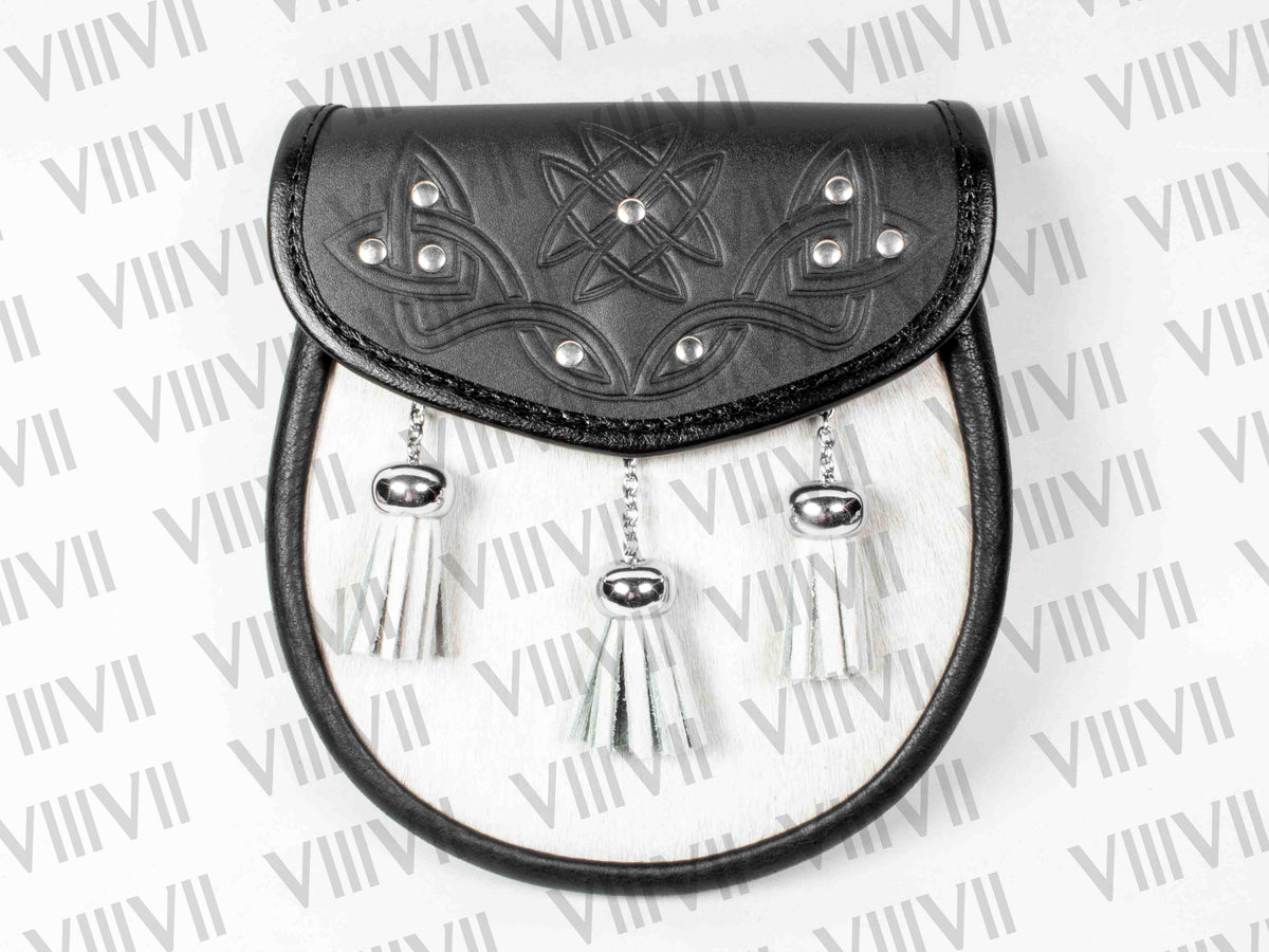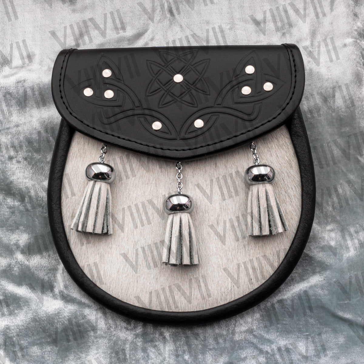 Designed with a spacious interior to carry your phone, wallet, and keys. The secure flap closure keeps everything in place, while the white fur and embossed detailing set it apart from standard sporrans.