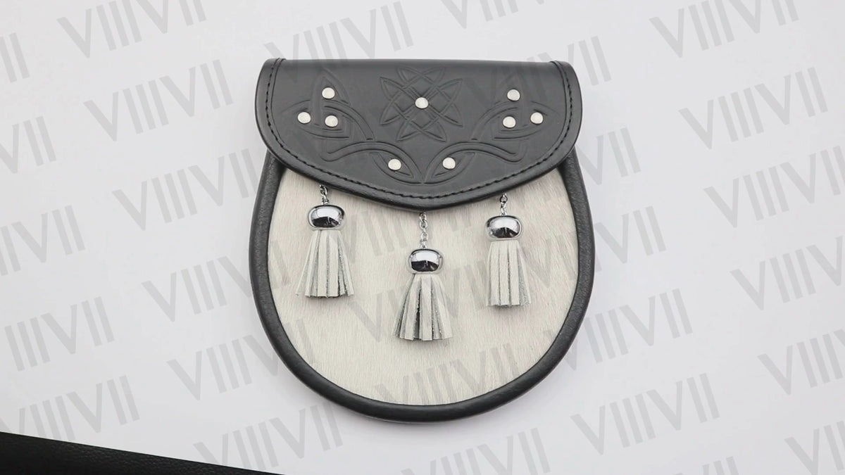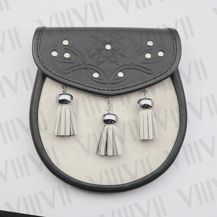 Step into any Highland gathering with distinction wearing this handcrafted sporran, made from premium white calf skin and genuine leather. Featuring a finely embossed Celtic design, this sporran blends timeless heritage with a clean, elegant look — ideal for both traditional and modern kilt outfits.