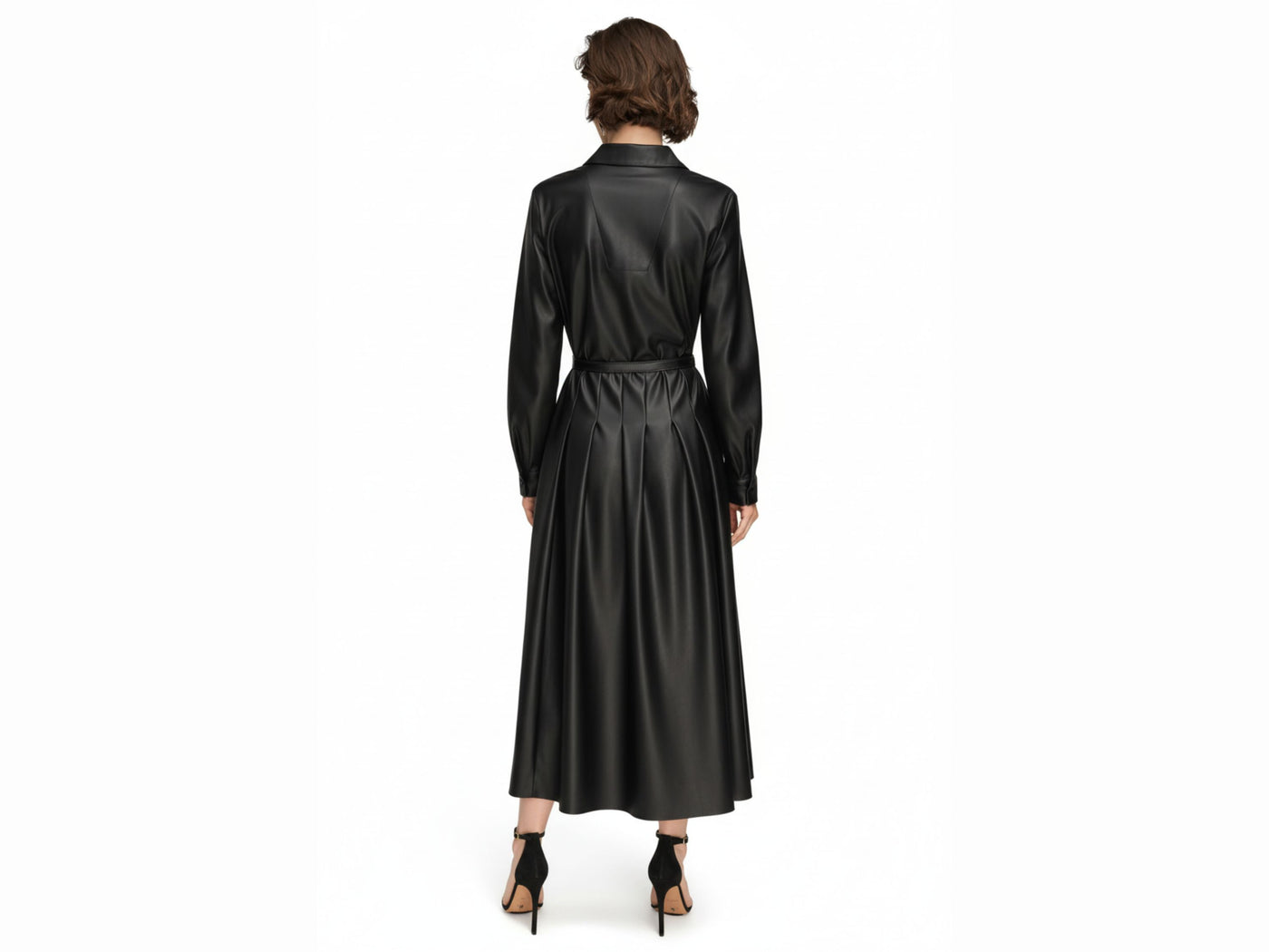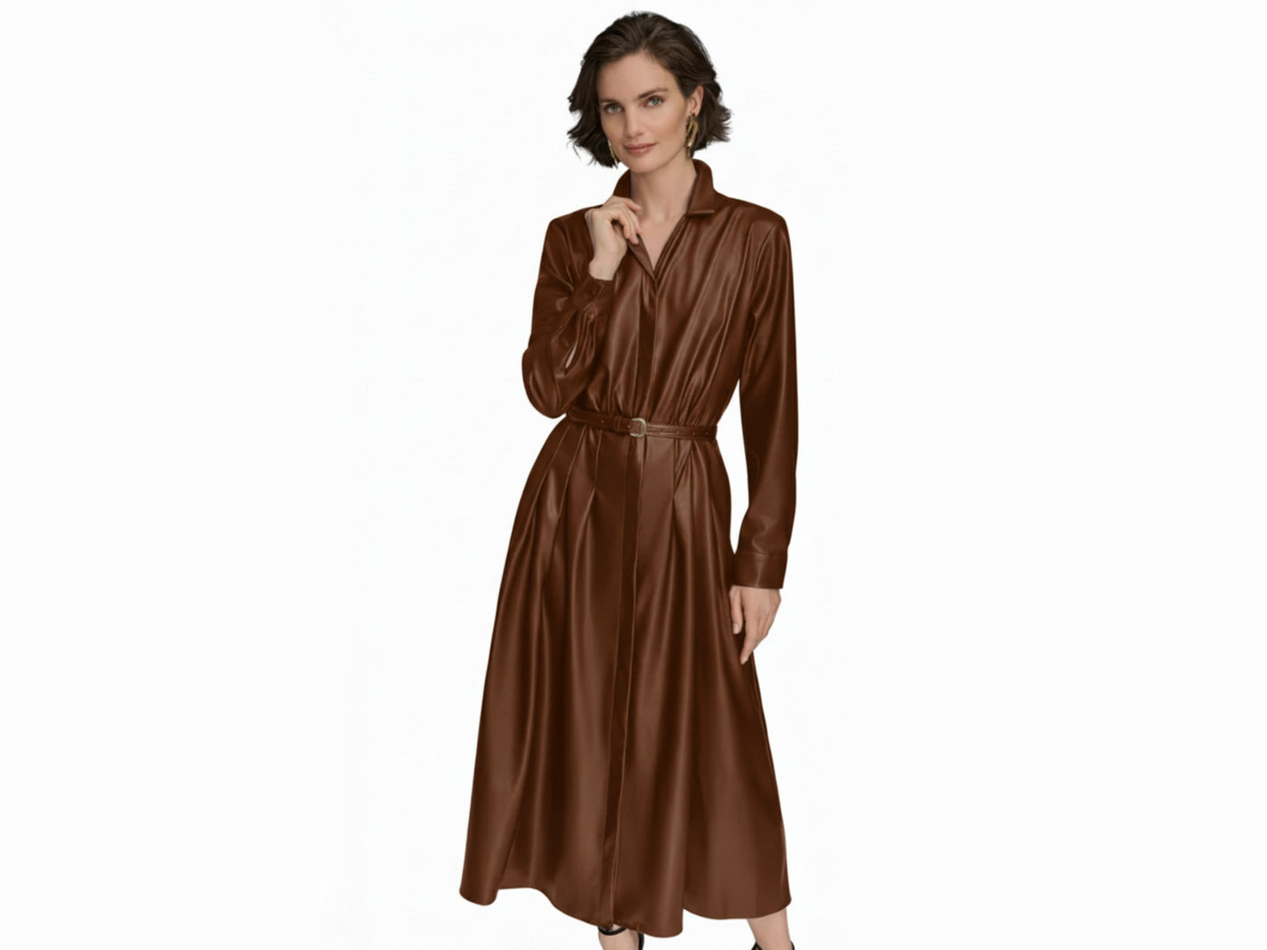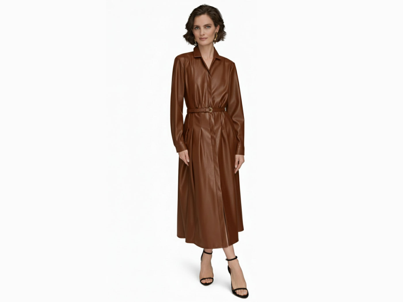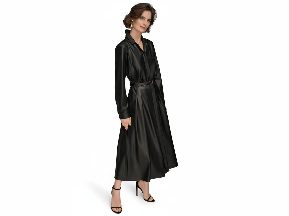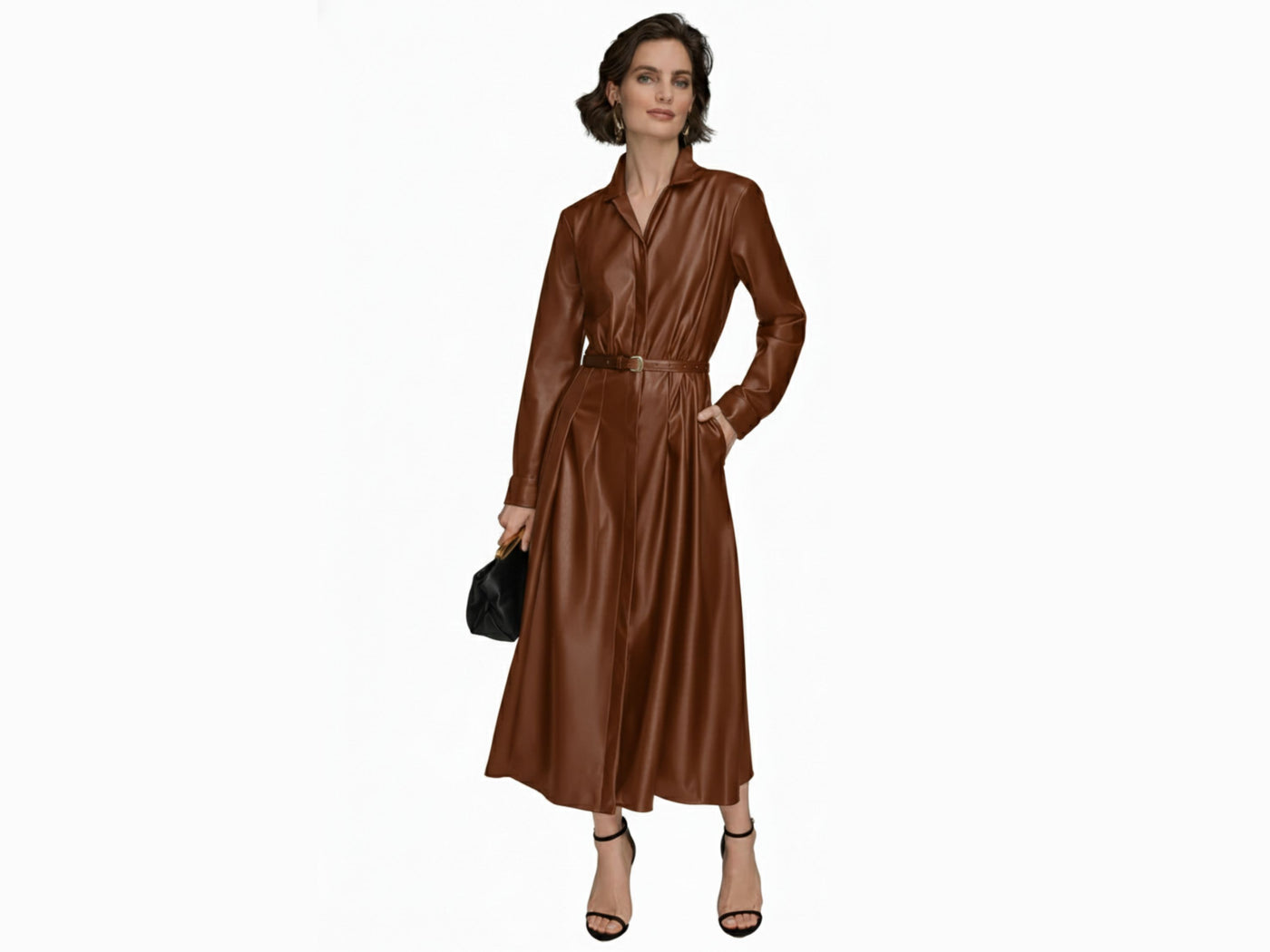 Leather Midi Shirt Dress – Genuine Leather Elegance