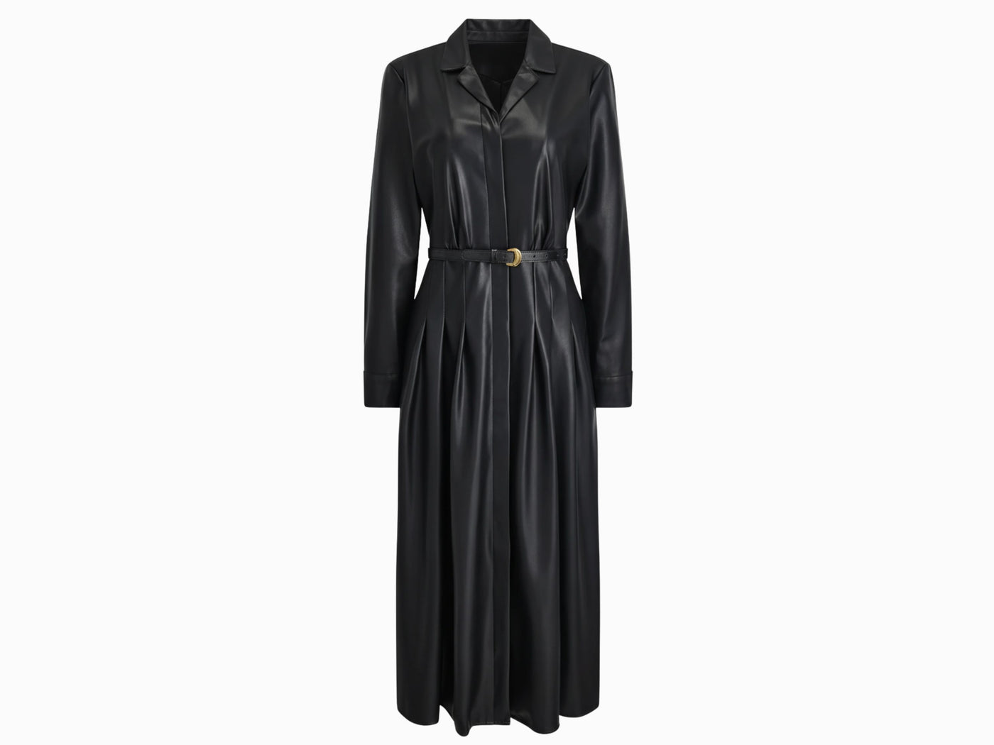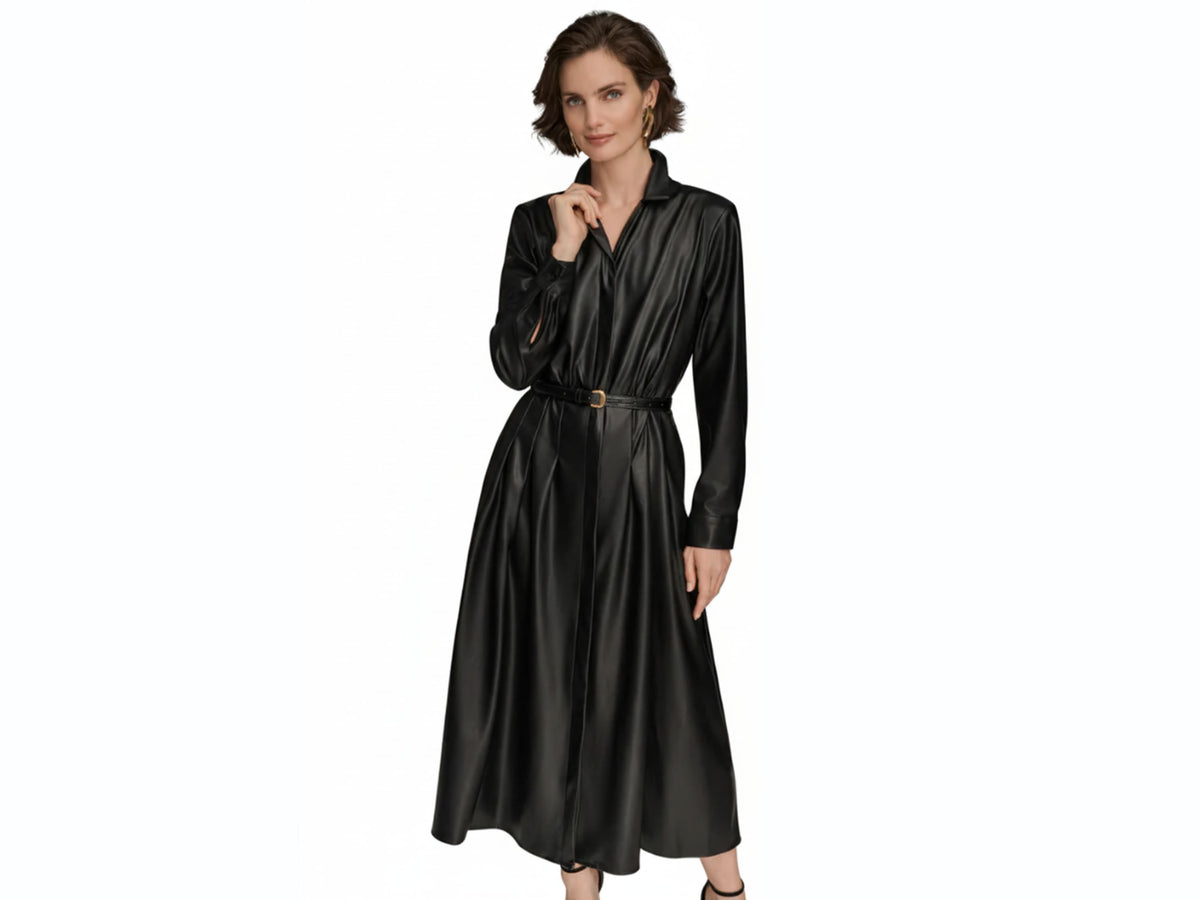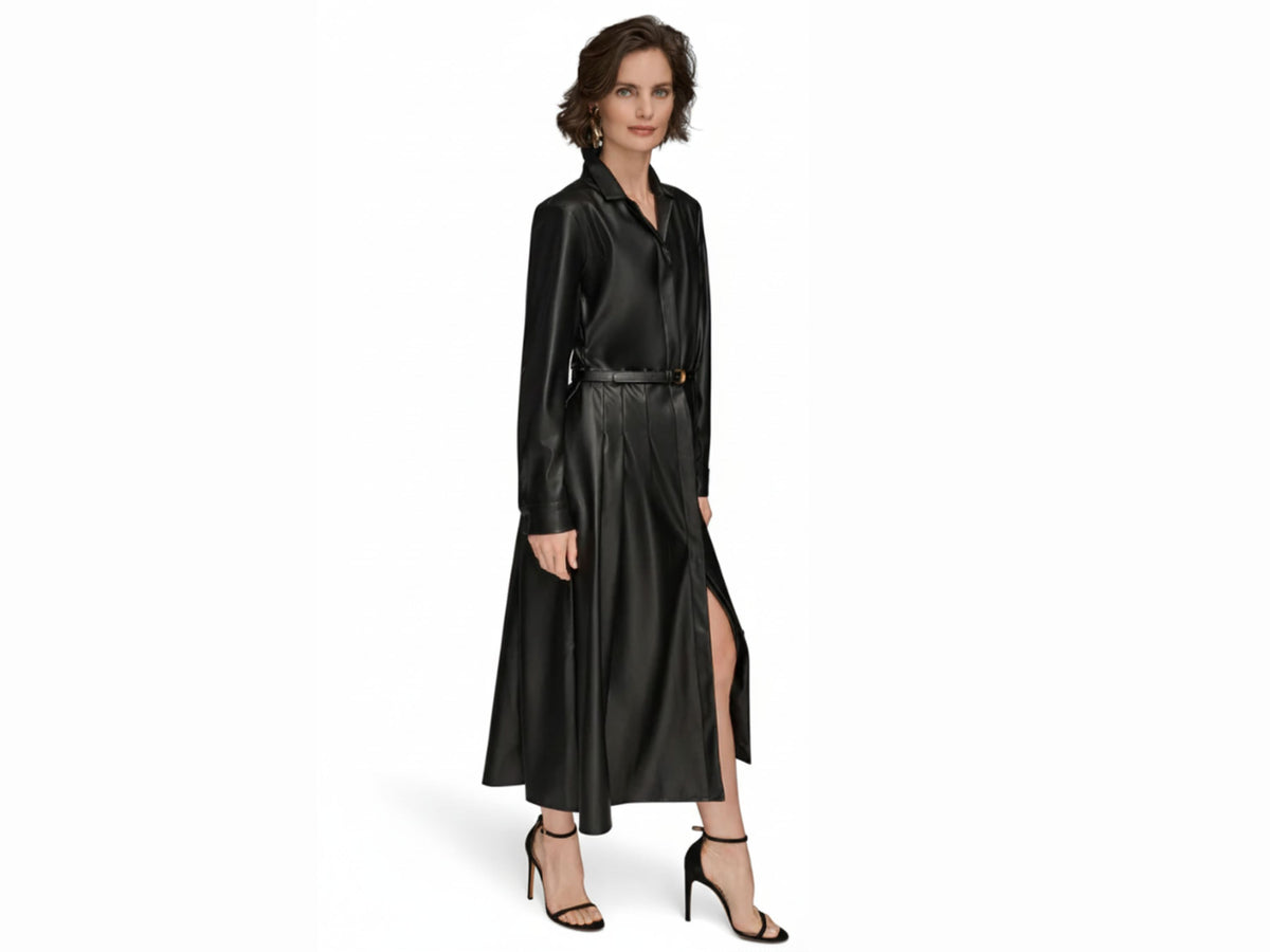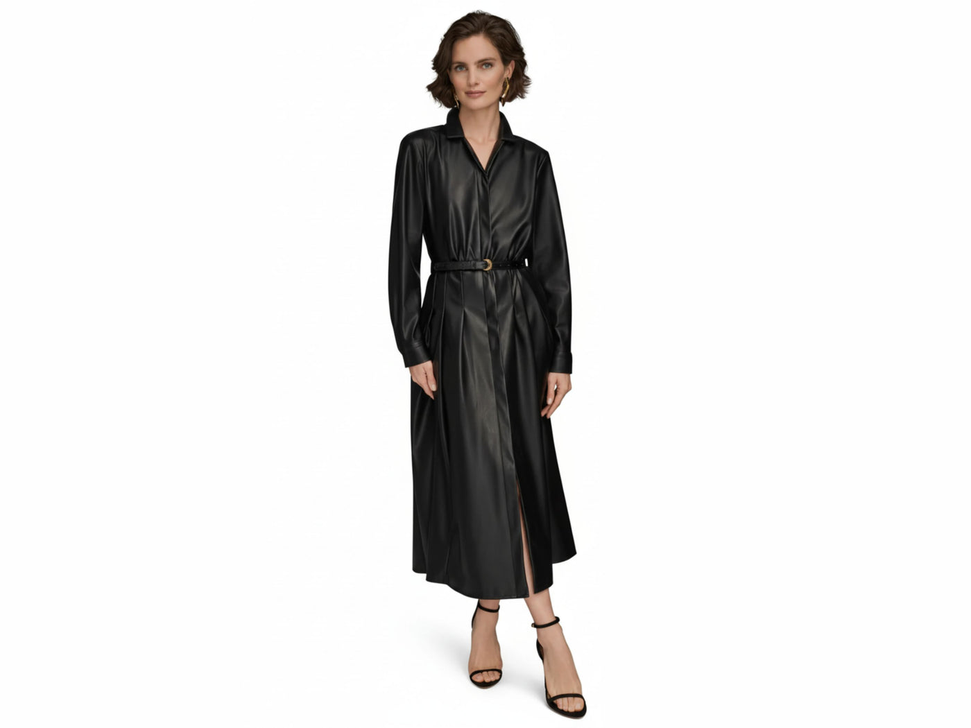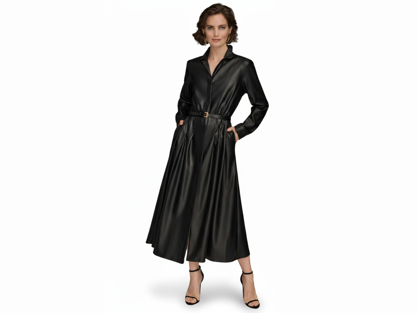 Leather Midi Shirt Dress – Genuine Leather Elegance