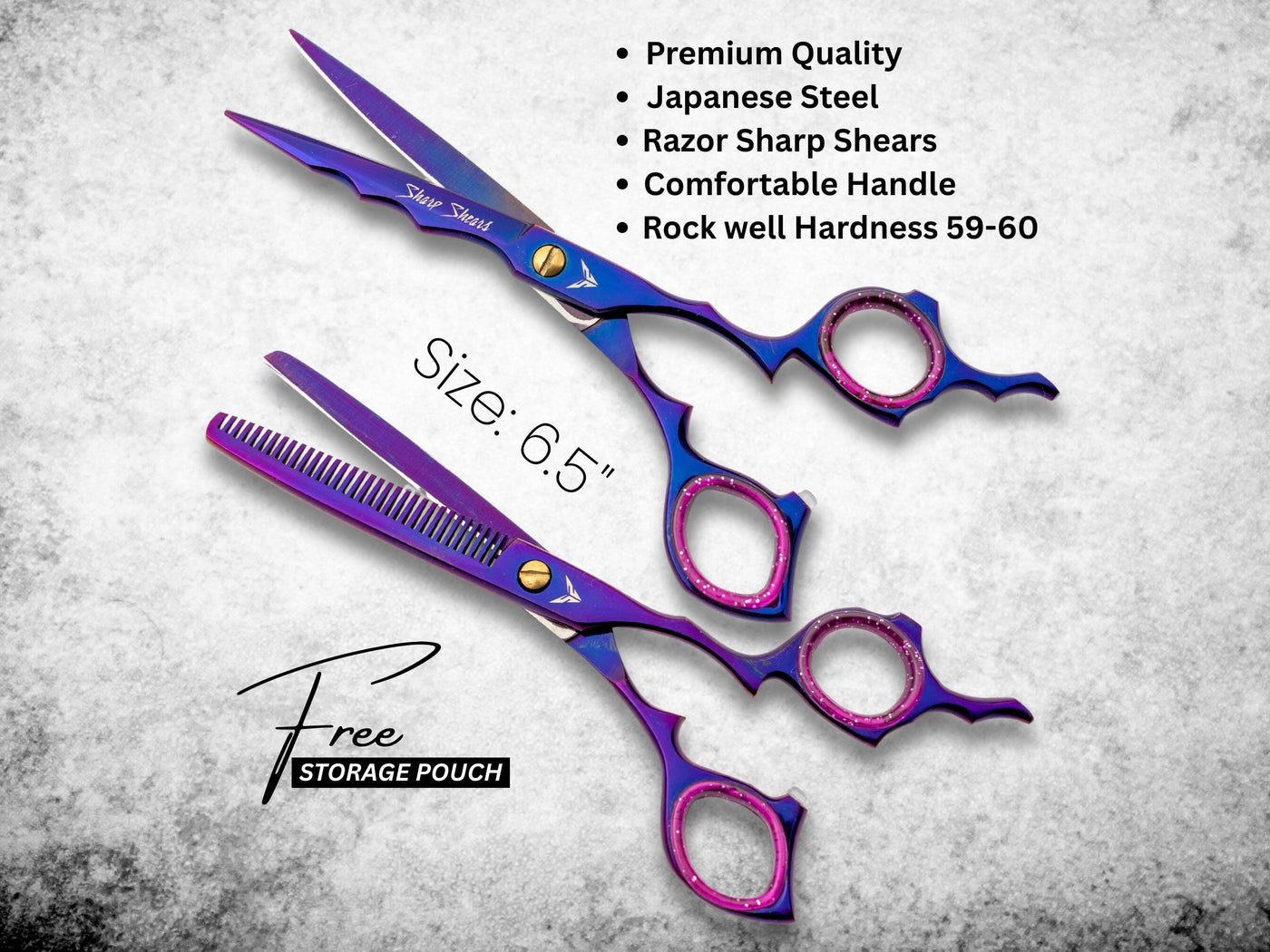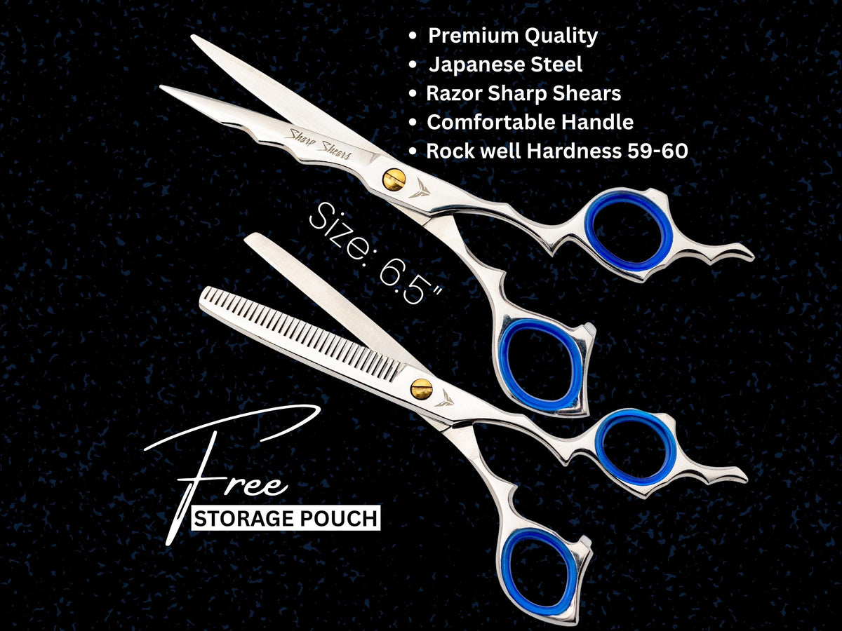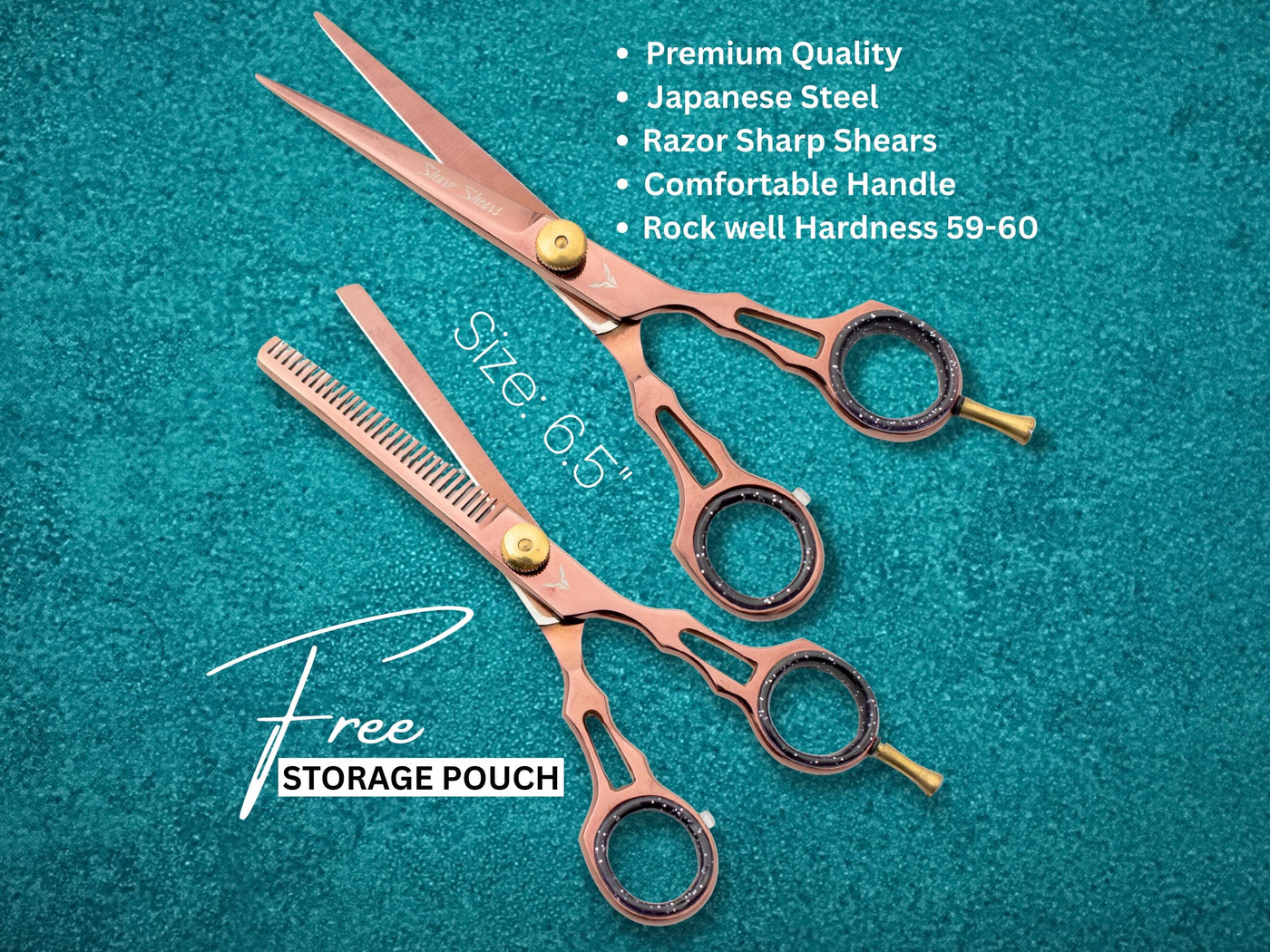 Achieve salon-quality results with this premium set of 6.5-inch Japanese Steel Hair Cutting Scissors and 33-Teeth Thinning Shears. Designed for barbers, hairdressers, stylists, and cosmetologists, this duo is engineered for precision, comfort, and long-term performance.