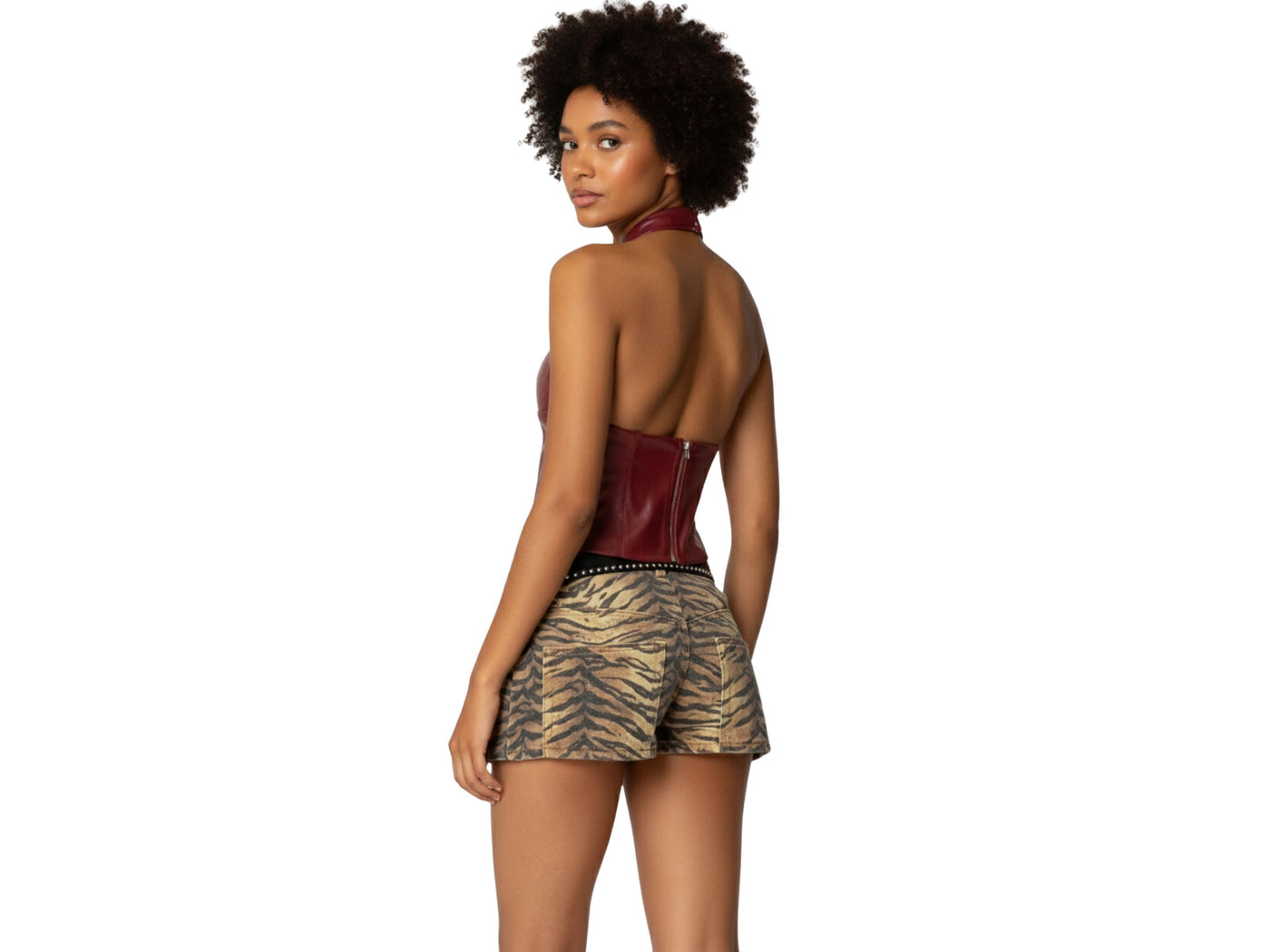 Shop the Genuine Leather Halter Top today and make a statement with timeless sophistication and modern allure.